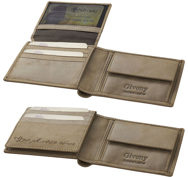 ארנק עור עם תא למטבעות ו־8 תאים לכרטיסים- חריטה אישית