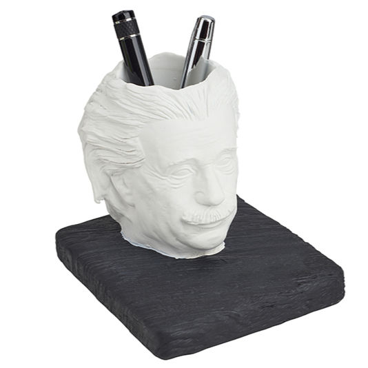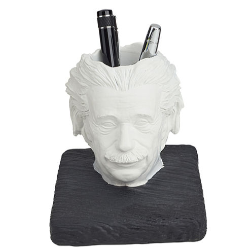 דמות ראשו של אלברט איינשטיין בעיצוב אמנותי ומדויק הופכת את המעמד לאובייקט בולט ומלא אופי, כזה שמוסיף אמירה לכל שולחן עבודה או משרד.