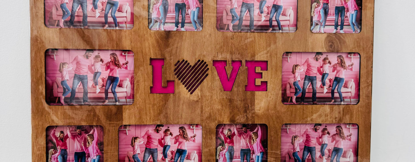 מסגרת עץ איכותית לתלייה על הקיר, בגודל מרשים המתאים ל־10 תמונות.