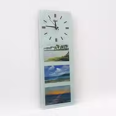 שעון קיר אלגנטי מזכוכית חלבית, שמשלב בין פריט דקורטיבי מעוצב לבין זיכרונות אישיים.